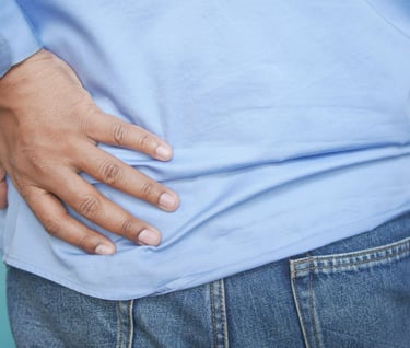 La lombalgie correspond à une douleur localisée dans la région lombaire, située entre la dernière côte et le pli fessier.